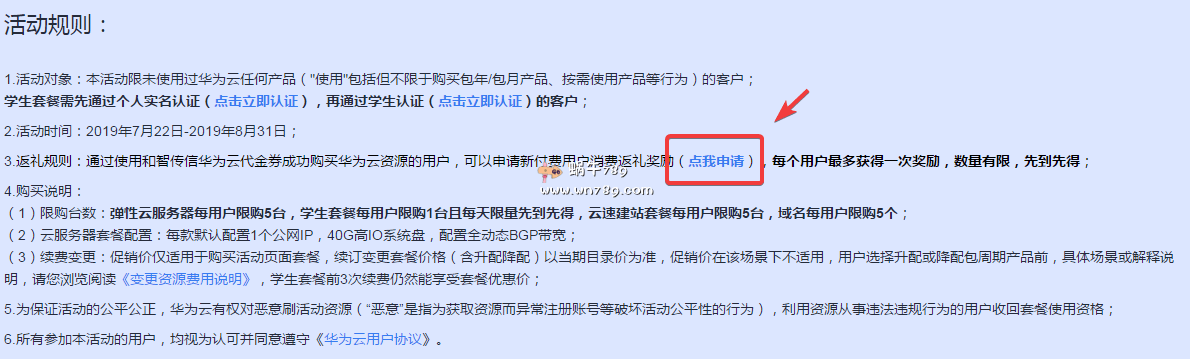华为云,华为公司旗下的云计算品牌,国内知名大企业,所以产品稳定靠谱没毛病。今天商家工作人员给蜗牛发来了一个关于新用户专享的特惠活动,蜗牛看了下活动开启时间是2019年7月22日,到2019年8月31日截止;虽然活动发来得有点晚,但是还是非常给力的,可以低价购入香港云服务器、国内云服务器、云速建站(并非虚拟主机)、COM域名、CN域名等。活动通过购买折扣券的形式进行,并且还送价值139元的荣耀手环3、价值99元的华为蓝牙音箱,真正的超值优惠。此次活动仅限未使用过华为云任何产品(”使用”包括但不限于购买包年/包月产品、按需使用产品等行为)的客户,建议大家全新注册账号参与活动。