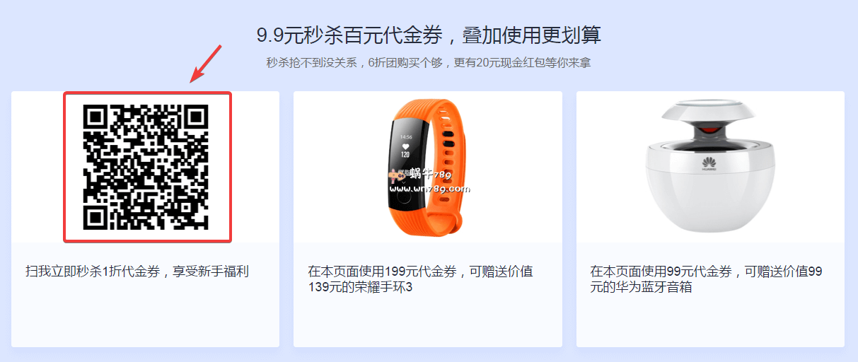 这里提醒下: 使用199元代金券可赠送价值139元的荣耀手环3、 使用99元代金券可赠送价值99元的华为蓝牙音箱!看你自己想需要什么就购买对应面值的代金券吧。
