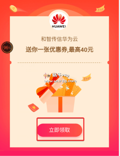 那秒杀秒杀不到、团购没有路子,怎么办?我们可以考虑实价格购买代金券(99元的代金券就是99元、199元的代金券就是199元)。是不是没有一点折扣了呢?不是!我们点击原价购买代金券后需要注册“ 和智传信华为云”的账号,注册账号后首先弹出的是如下图页面,送我们一个最高40元的优惠券(满50元即可使用),蜗牛试了两个账号,每个账号抽到的大概是25元左右,已经很不错了。然后原价或者平台购买代金券时均可以使用自己抽到的优惠券。其实这里有一点,不要担心原价购买代金券就亏了,其实没有的,因为你购入了的代金券可以在华为云消费直接抵消掉对应的金额,而且还有实物送,何乐而不为。此方法购买代金券难度为0颗星,但是可以享受的优惠不是很大,最高40元!!!